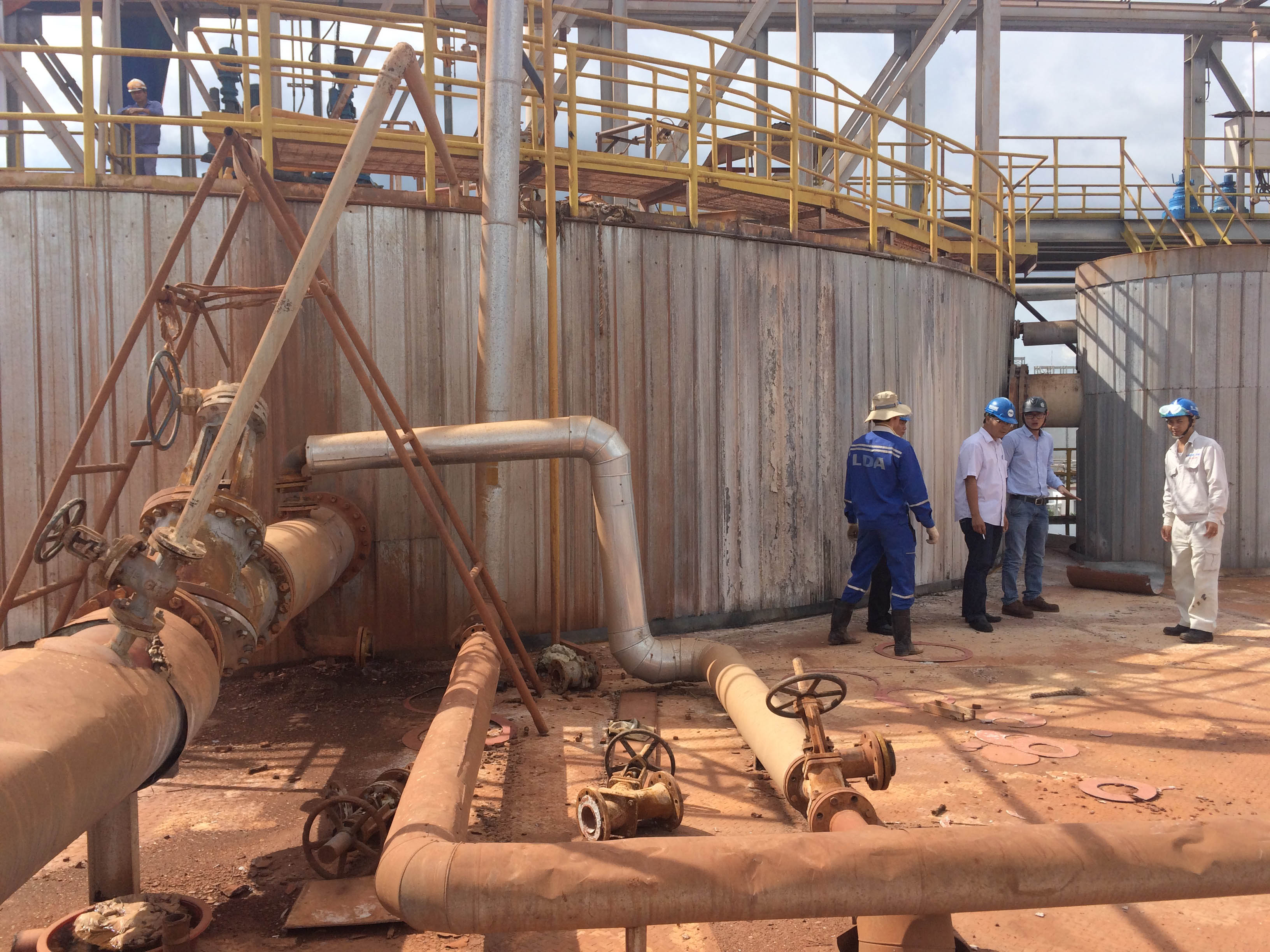 近日,我司受越南LDA氧化铝厂邀请,前往越南和LDA氧化铝厂工作人员进行技术交流。会上,我司人员详细介绍了我司氧化铝方面的仪表,如NK测量仪、RP测量仪、泥层界面仪等,并深入讨论相关仪表的应用。越方对我司仪表产生了浓厚的兴趣,并与我方确定了下一步合作事宜。会后,技术人员前往现场确定仪表安装位置及工况条件(如下图)。 ..